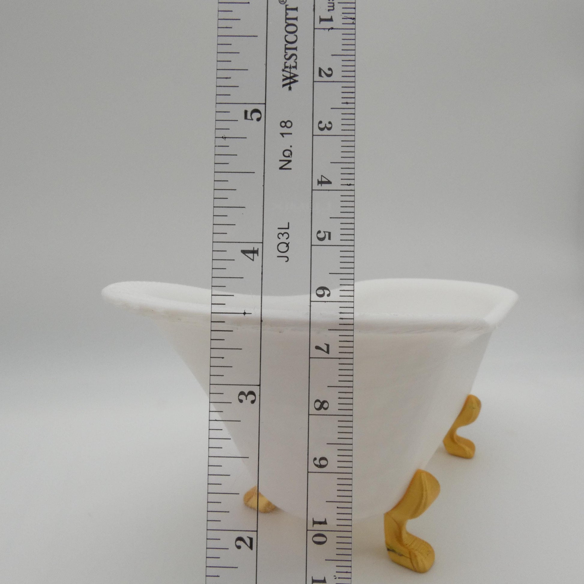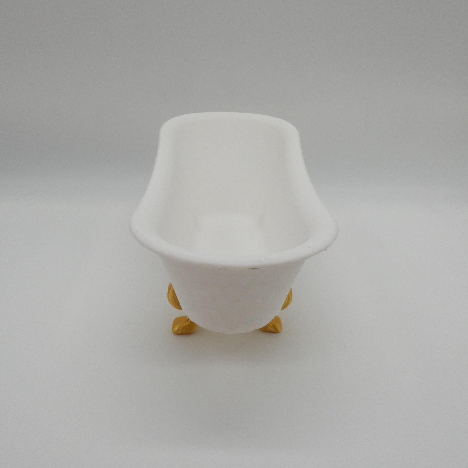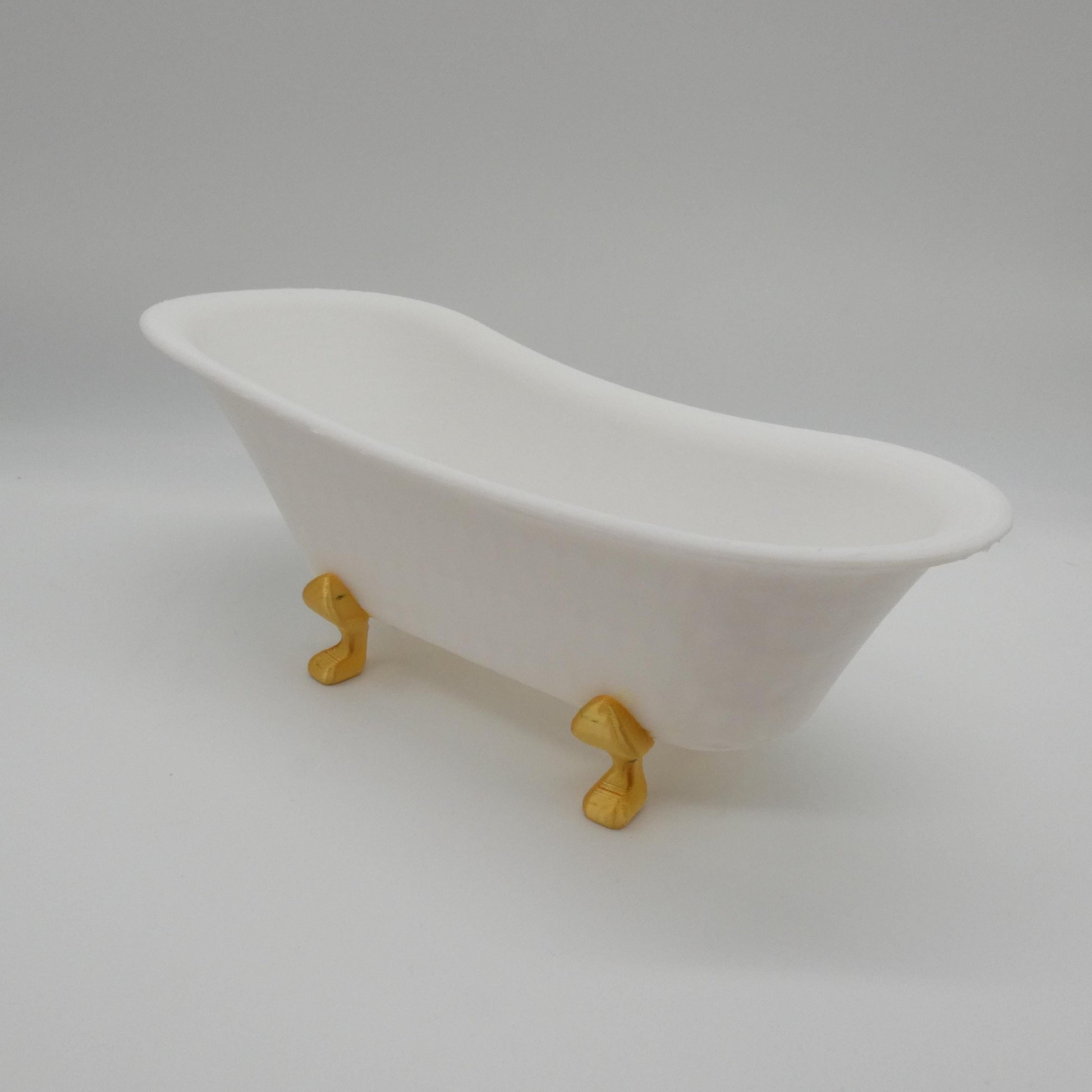 This is a 3D printed piece of furniture/decor, printed by me. It is made with PLA plastic, and has not been painted. It is paintable, a primer coat would be recommended. Due to the nature of 3D printing there will be minor flaws and variances in appearance from piece to piece, just as in real furniture. As you can see in the photos, the underside of the tub and the lip are not perfect. Please review the pictures carefully. Doll and robe are not included.