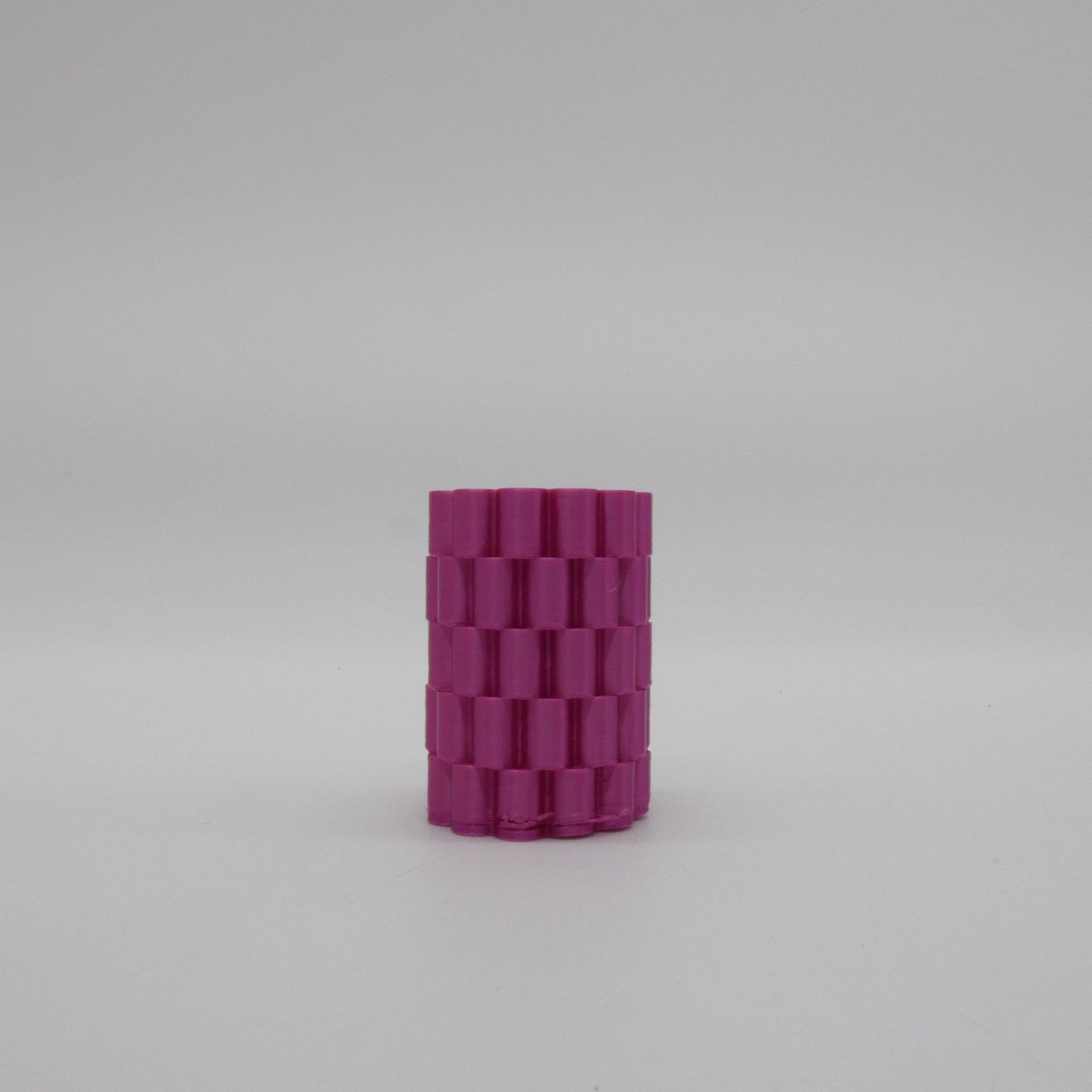 It is made with PLA plastic, and has not been painted. Due to the nature of 3D printing there will be minor flaws and variances in appearance from piece to piece, just as in real furniture and decor.